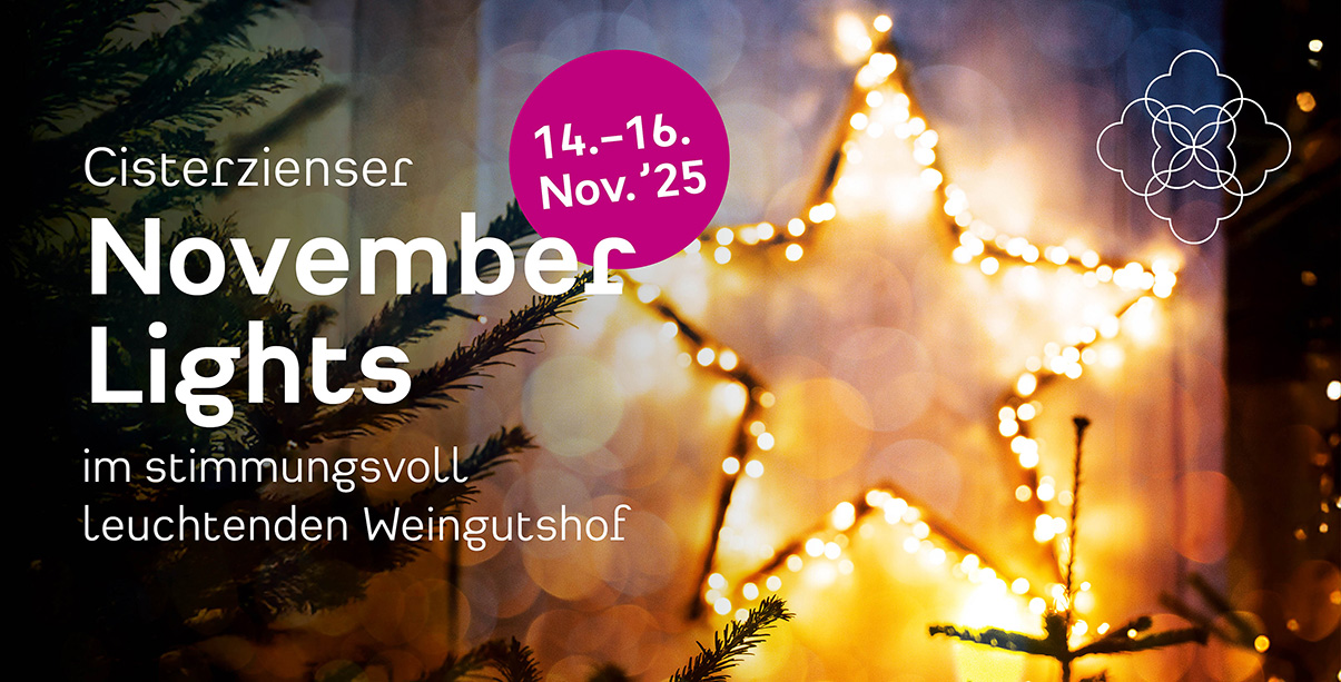 Wir haben eine bessere Idee: Genießen Sie den ersten Glühwein der Saison bei den November Lights im Cisterzienser Weingut. Warm, trocken und gemütlich.