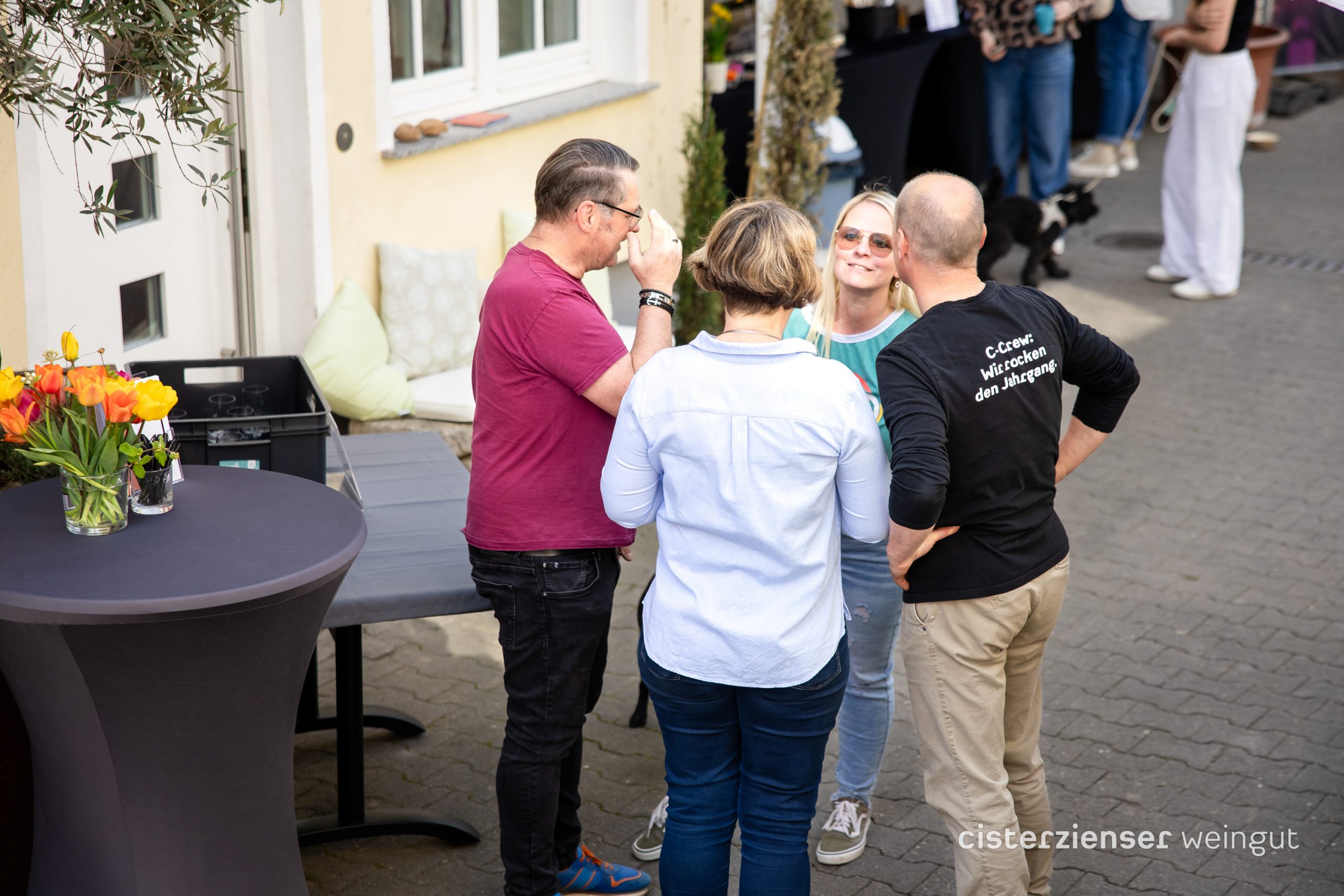 Wie war’s? Entspannt, unerwartet warm und bestens besucht. Über 100 Weinfreundinnen und -freunde kamen zu „Wein pur“, saßen mit einem „ach wunderbar“ auf den Lippen lange mit uns draußen und freuten sich über guten Wein und gute Gespräche. Die C-Crew hat begeistert mitgefeiert, auch nachdem der „offizielle“ Teil für sie beendet war, hurra.