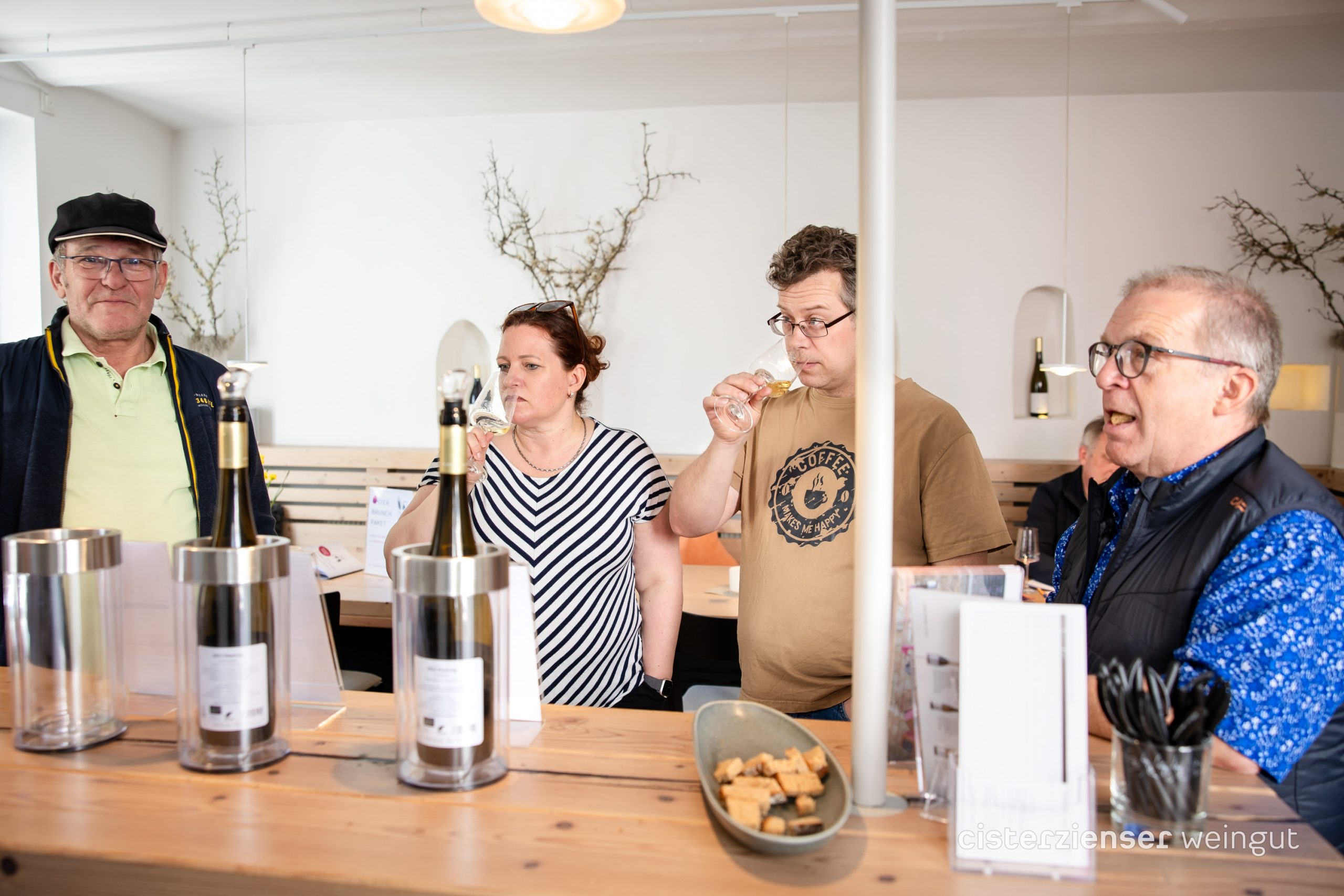 Warum Wein pur? Weil wir einfach gern Wein mit Gleichgesinnten probieren wollten, mit Fokus auf die abgefĂĽllten neuen Weine im Cisterzienser-Sortiment. Ohne Schnickschnack drumherum.